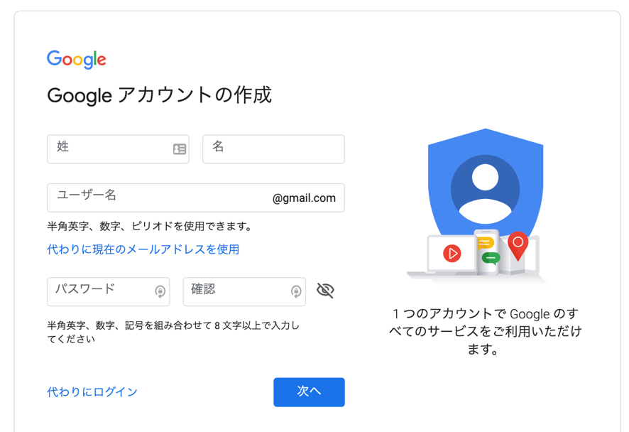 Googleアカウントを持っていない人はGoogleアカウントを作成しましょう!もちろんお金もかかりませんし、便利なgmailアカウントも作成できます。