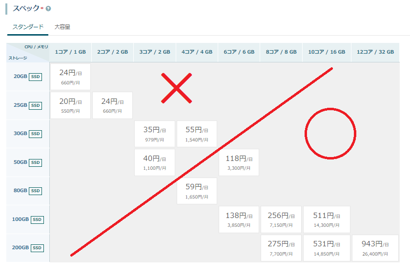 スペックはメモリ4GB、ストレージ50GB以上のものから参加人数や導入予定のmodの重さなどを考慮して選択します。