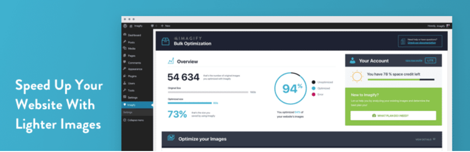 ImagifyはWebP変換にも対応している画像圧縮ができる無料プラグインです。