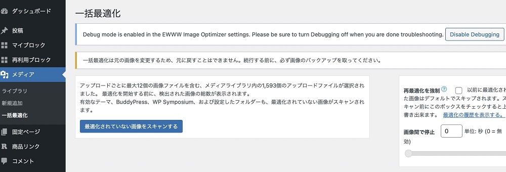 それでは実際にEWWWW Image Optimizerを使って画像を圧縮する方法についてもご紹介します。