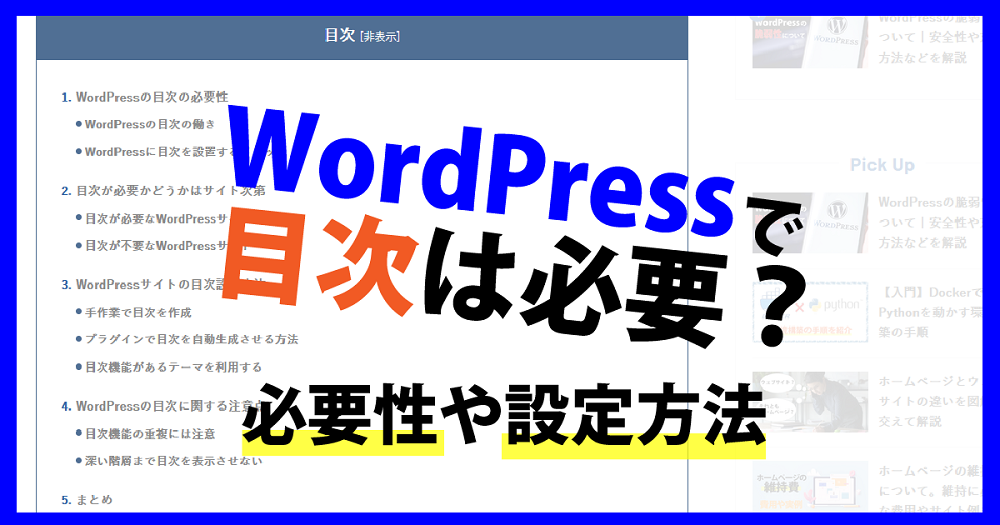 そこで、この記事ではWordPressサイトでの目次の必要性や設定方法の種類などをご紹介します。