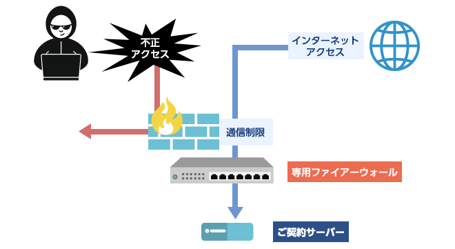 外部からの不正なアクセスからデータを守る、お客様専用のファイアーウォールをご用意しています。