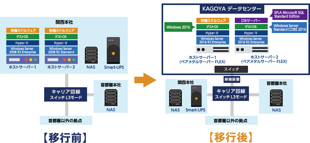 ミドルウェアを動かすWindows Server OSは異なるバージョンが混在している状態であったため、ホストOSにWindows Server 2016 R2 Enterpriseを実装することで、マイクロソフトのサポートに対応可能になりました。