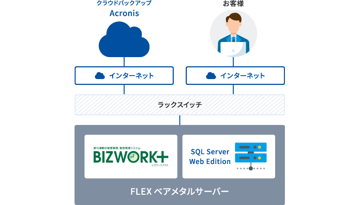 コストパフォーマンスの高いベアメタルサーバーで安定した基盤を実現。クラウドバックアップ/Acronis を組み合わせることでコストを抑えつつも離れた場所にバックアップできる構成をご提案しました。