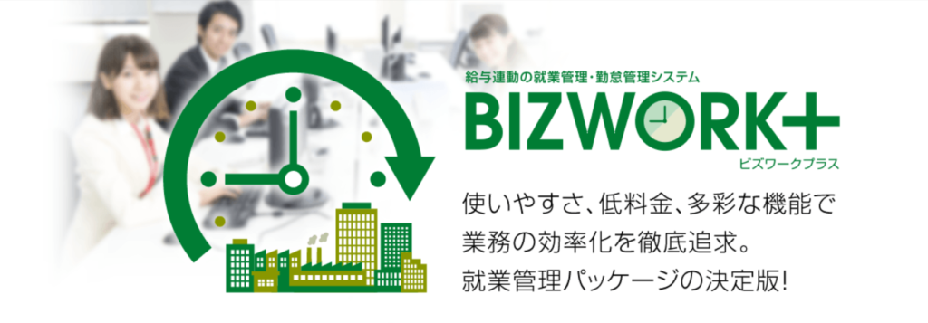 給与連動の勤怠管理・就業管理システム「BIZWORK+」は、ワークフローが標準で付いている等、機能も充実!