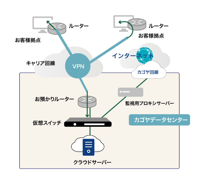 - プロキシーサーバー経由とすることで拠点間通信環境の監視・運用もおまかせ
