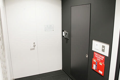 一方の扉しか開かないインターロック式の前室とアンチパスバック方式を採用しています。
