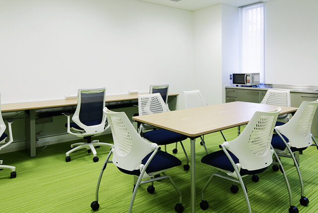 ご用意しています無料Wi-Fi接続や自動販売機・ミニキッチンを完備。長期にわたるプロジェクトなどには、会議室や貸しスペースをご利用ください。