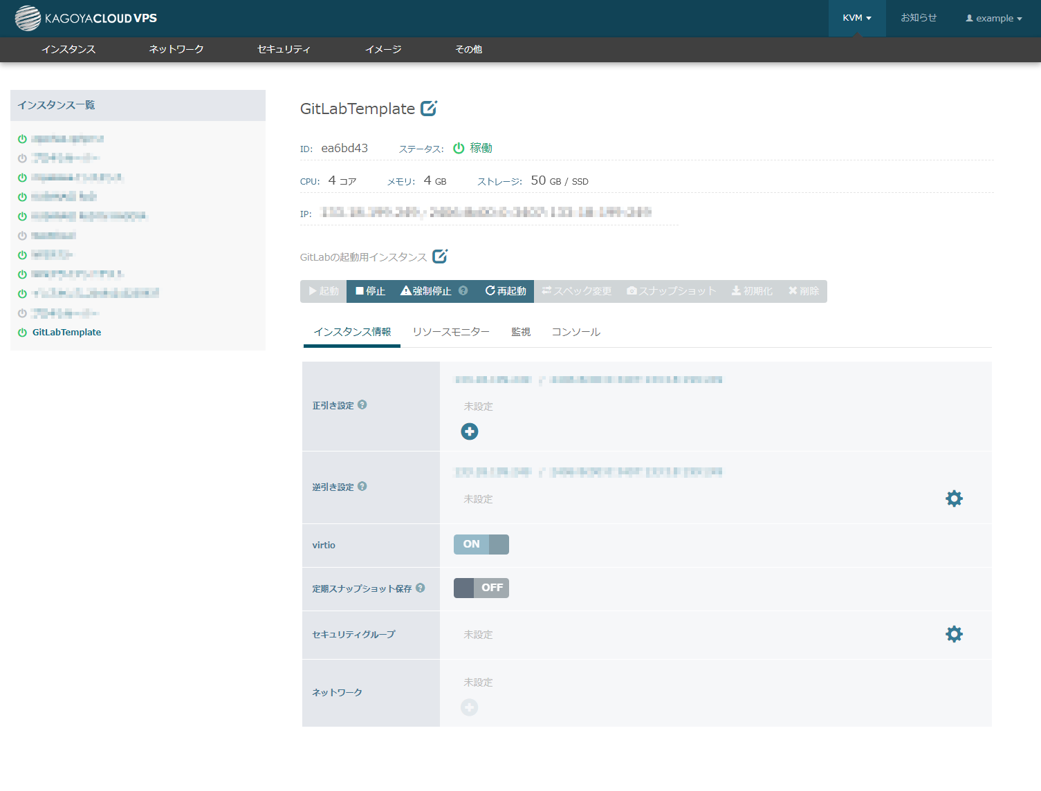 ◇コントロールパネル > KVM > インスタンス