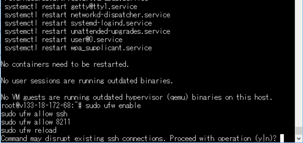 ここで再びYes/Noの質問が表示されますので、「y」を入力してEnterを押します。