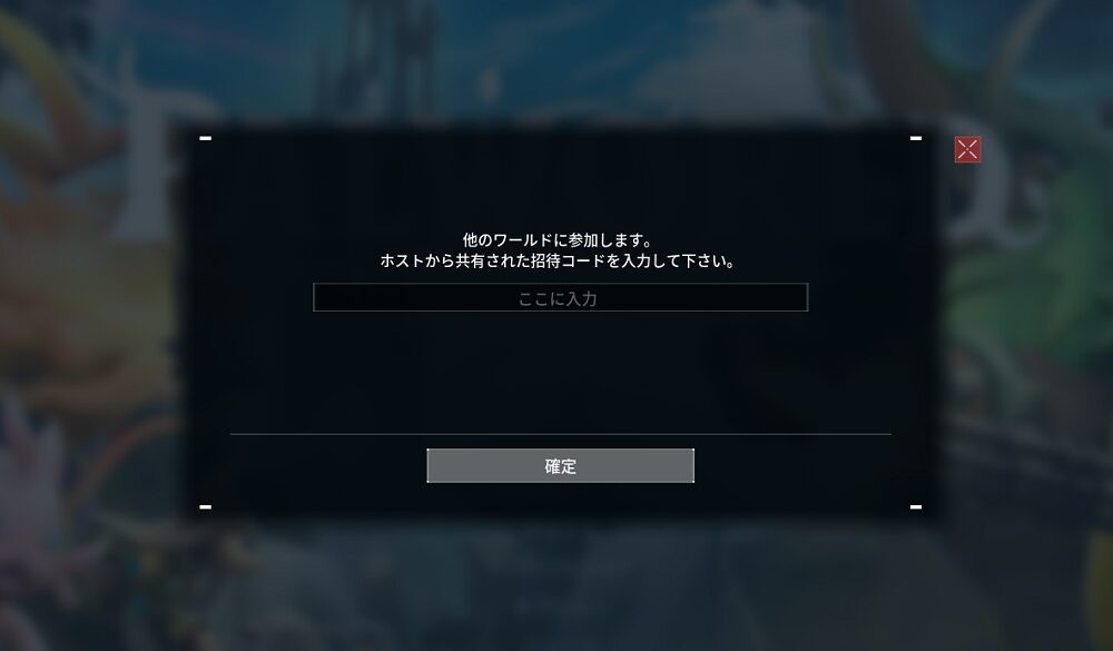 友人側の操作としては、パルワールド起動後に「マルチプレイに参加する(招待コード)」を選択し、共有された招待コードを入力します。