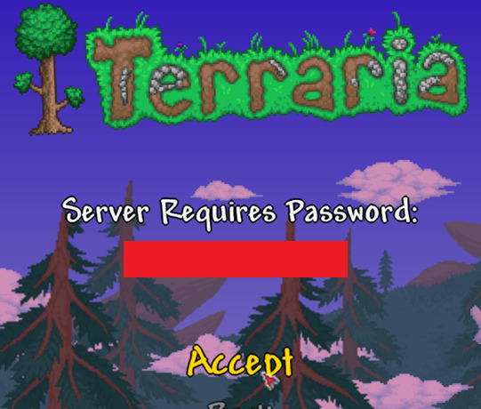 - 「Enter Server IP Address:」でテラリアサーバーのIPアドレスを入力し、「Accept」をクリックする