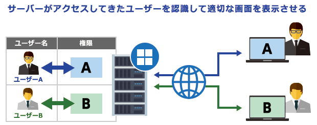 「アクティブ ディレクトリ」という言葉を聞いたことがない方は、社員の名簿を管理するシステムのようなものと考えてください。複数の社員が勝手にサーバーにアクセスしたり、サーバー設定の内容を変更されたりしたら困りますね。こちらを使用することでサーバーにアクセスする社員を管理したり、使用できるファイルの種類を指定できるようになります。サーバー上で一括して利用ユーザーを管理することができるので、セキュリティの質も上がります。