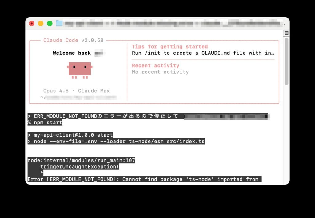 Claude Codeのエラー表示