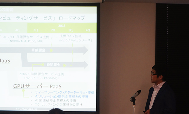 第3部では、当社ソリューショングループ サービス企画チーム リーダーの鶴岡 謙吾より、今後のAI、GPUコンピューティング分野での取り組みについてご説明させていただきました。