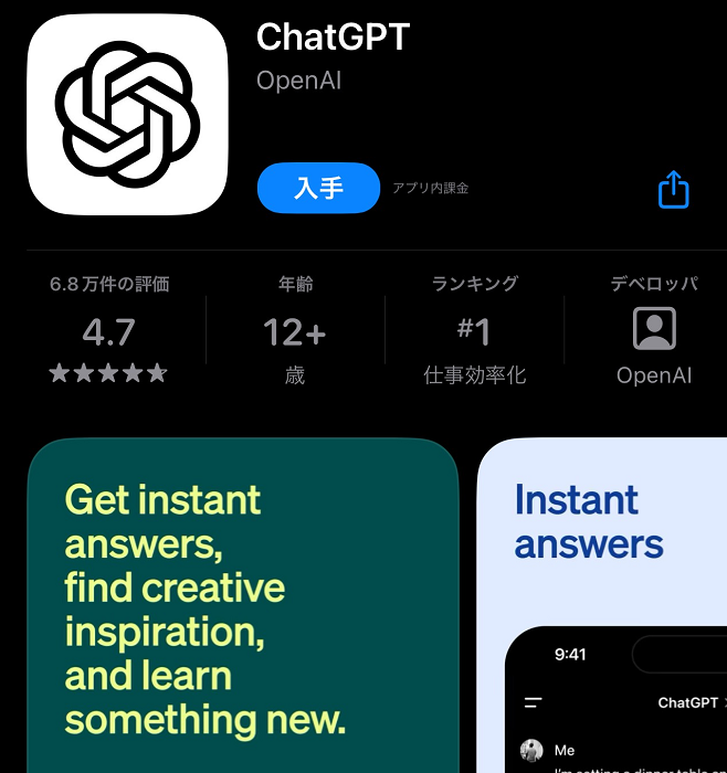まずはアプリ版のChatGPTをダウンロードします。(iOS版 / android版)