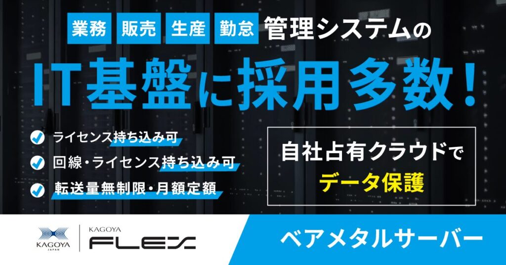 もちろん、全てのベアメタルサーバーが高いという訳ではなく、FLEXベアメタルサーバーのようにコスパ重視、月額定額で利用できるサービスも存在しています。