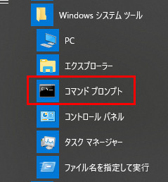 スタートメニュー → すべてのアプリ → Windowsシステムツール → コマンドプロンプト