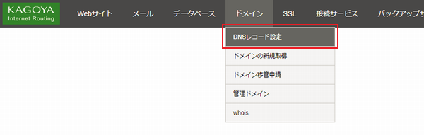 2. 「ドメイン」メニューより「DNSレコード設定」を選択する