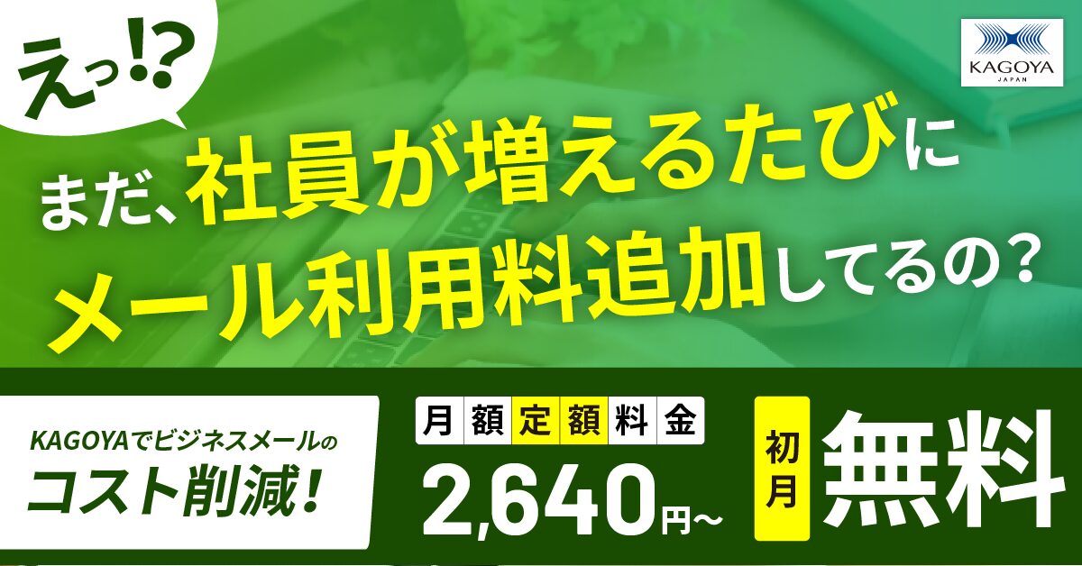 自社でメールアーカイブを導入する際は選定のポイントを把握しておくことはもちろん、予算にあった製品・サービスを探すことも必要です。その点、カゴヤのメールアーカイブサービス「Active! vault」は、高額システム同等の機能を初期費用・月額費用ともに数万円程度から使えます。