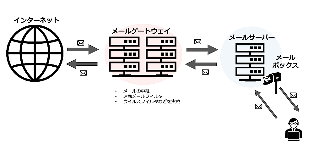 メールゲートウェイは、メールサーバーの負荷を軽減したり、メールサーバーにかわりさまざまな機能を実現したりすることが期待されます。