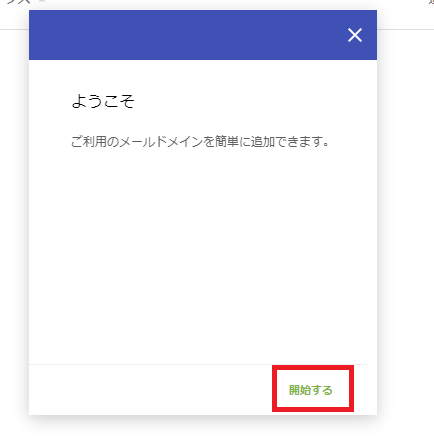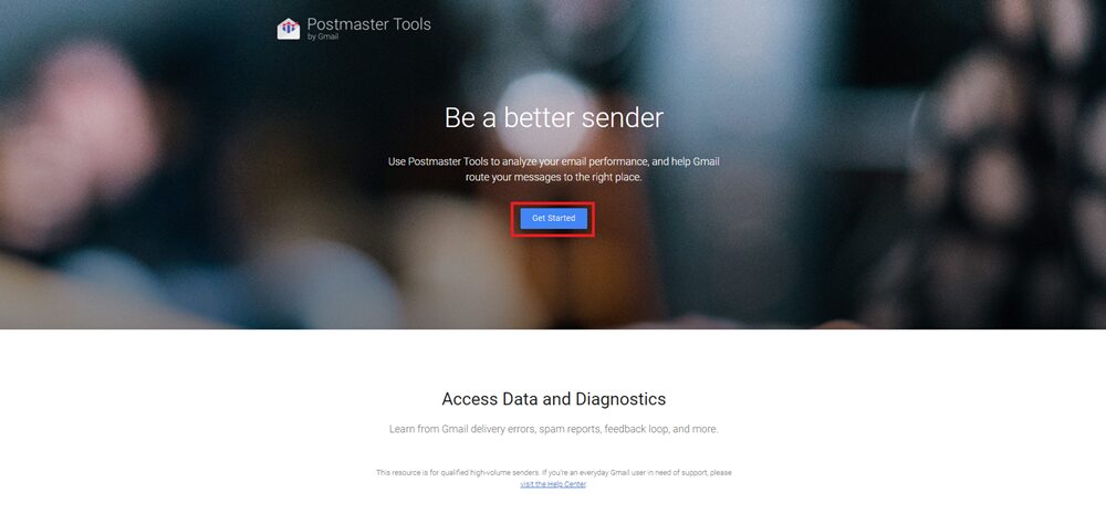 Postmaster Tools画面が開いたら画面中央にある「Get Started」をクリックして下さい。 - 「ようこそ」画面が表示されたら「開始」をクリックします。