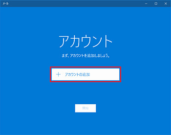 まず、スタートメニューを開き「メール」→「アカウント」→「アカウントの追加」の順にクリックします。以下のように「メール」の設定画面が表示されます。