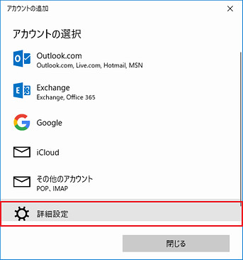 「アカウントの選択」画面が表示されるため、「詳細設定」をクリックします。