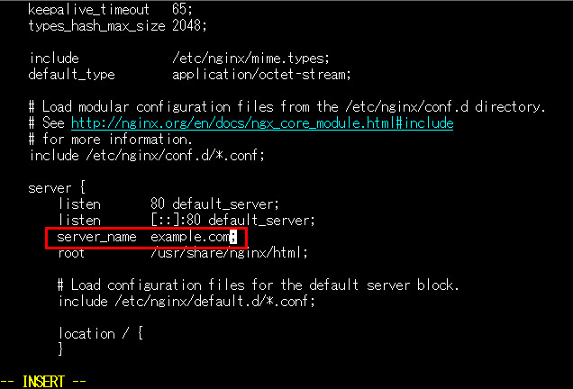 【入力するコマンド】sudo vi /etc/nginx/nginx.conf