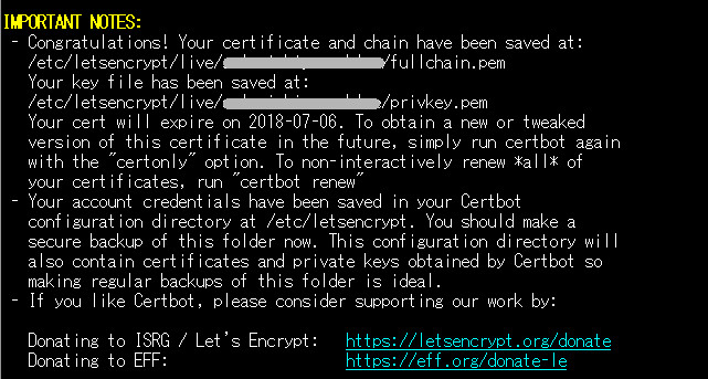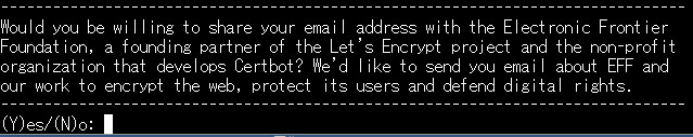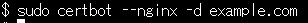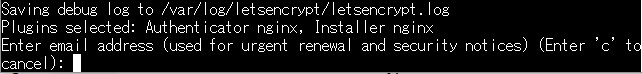 【入力するコマンド】sudo certbot –nginx -d example.com (*example.comはサンプルです)