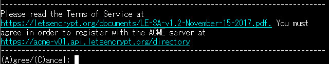 - 利用規約の確認と承認(Aとタイプしてエンター)