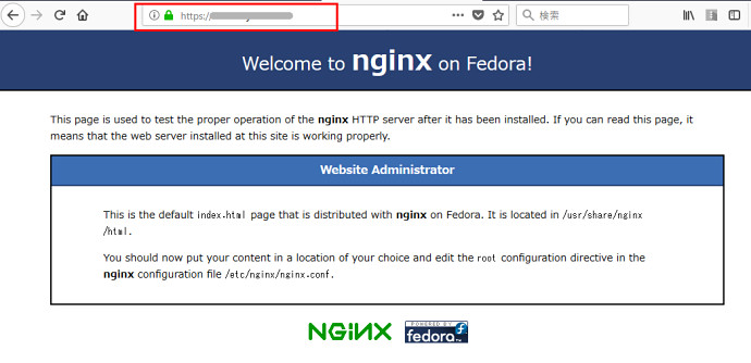- https://~でアクセスしてブラウザ上でSSLのマークが出ていることを確認する