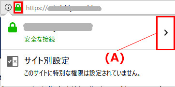 - ブラウザ上で鍵のマークをクリックし、さらに図の(A)の部分をクリック