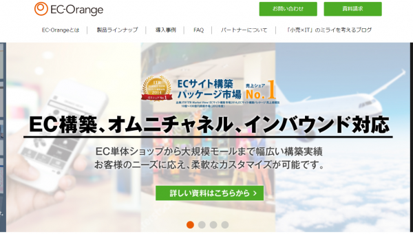 EC-Orangeは、有料のECサイトパッケージでは売上No1を誇る商品です。ECサイトと実店舗の売上・顧客情報などを一元管理できたり、ABC分析、RFM分析などのマーケティング機能が充実していたりすることで人気があります。