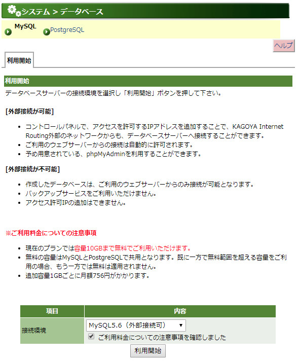 | マニュアルURL | https://support.kagoya.jp/kir/manual/mysql_plan/index.html |