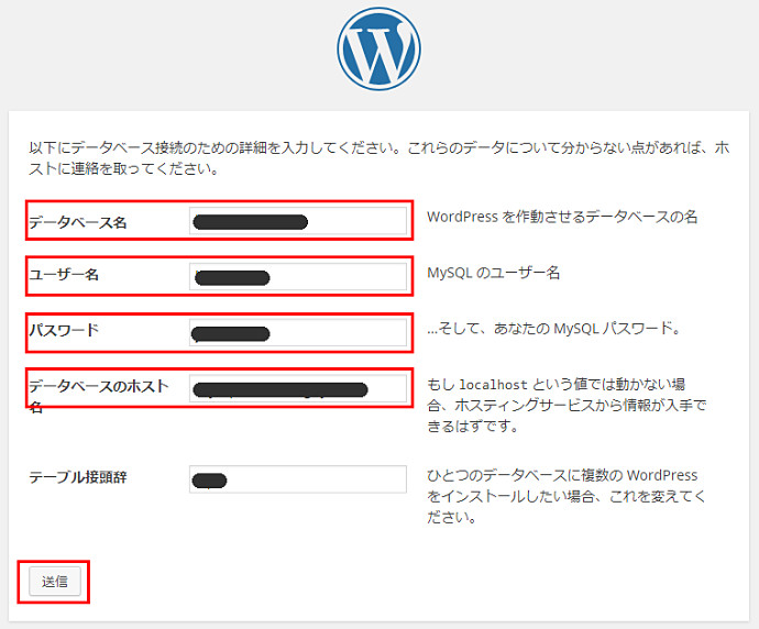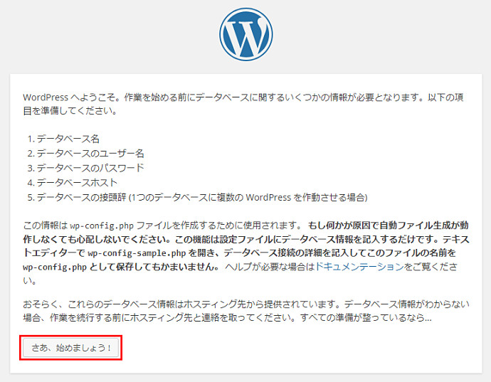 - インストール確認画面よりWordPressの初期設定画面にアクセス