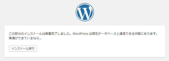 この画面が出れば、データベース情報の入力までは正しく行われていることがわかります。「インストール実行」ボタンをクリックして次に進みます。