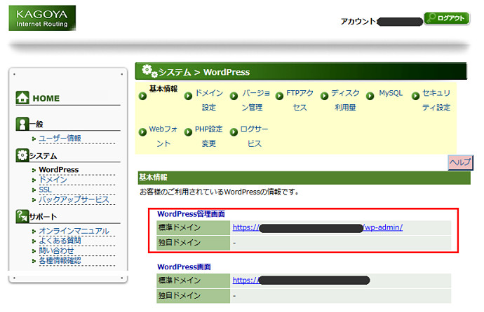 | マニュアルURL | https://support.kagoya.jp/kir/manual/wordpress/index.html |