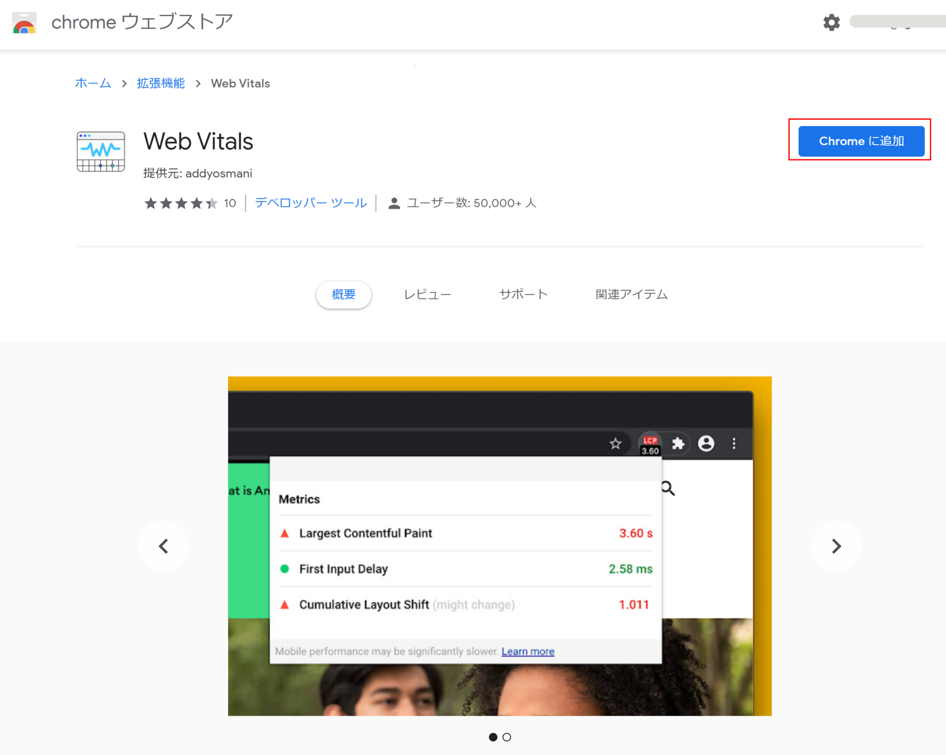 URL:https://chromewebstore.google.com/detail/web-vitals/ahfhijdlegdabablpippeagghigmibma?hl=ja