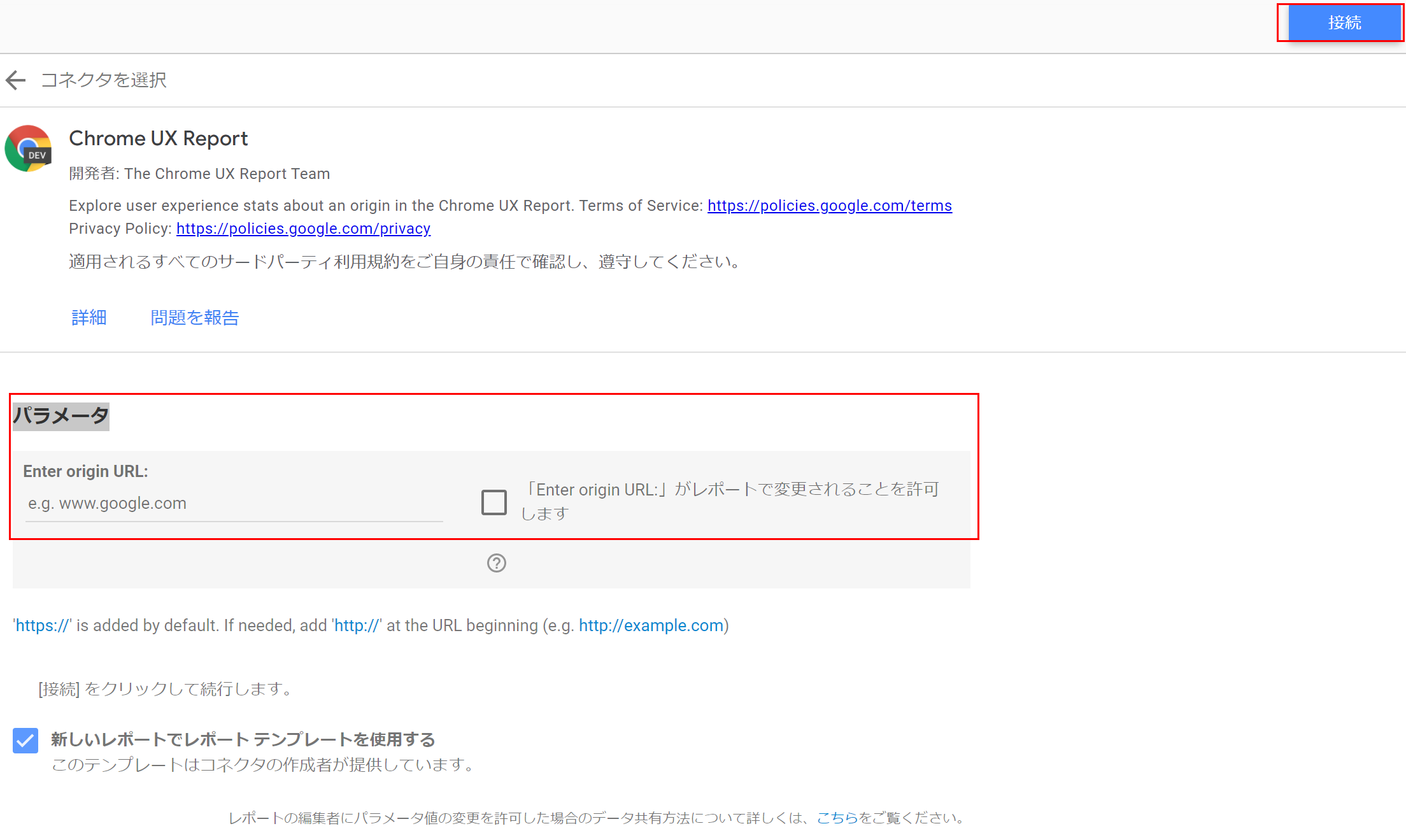 4. 『「Enter origin URL:」がレポートで変更されることを許可します』にチェックを入れる