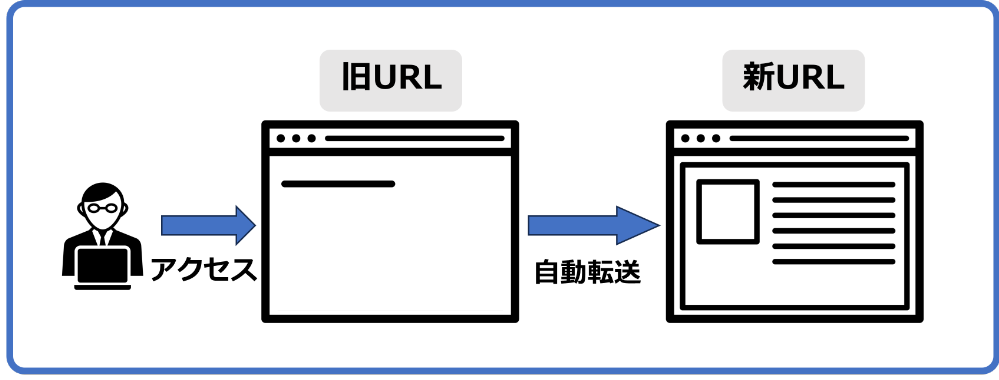 リダイレクトとはWebサイトのURLを変更した際などに、旧URLに対するユーザーのアクセスを新URLへ自動転送する仕組みです。