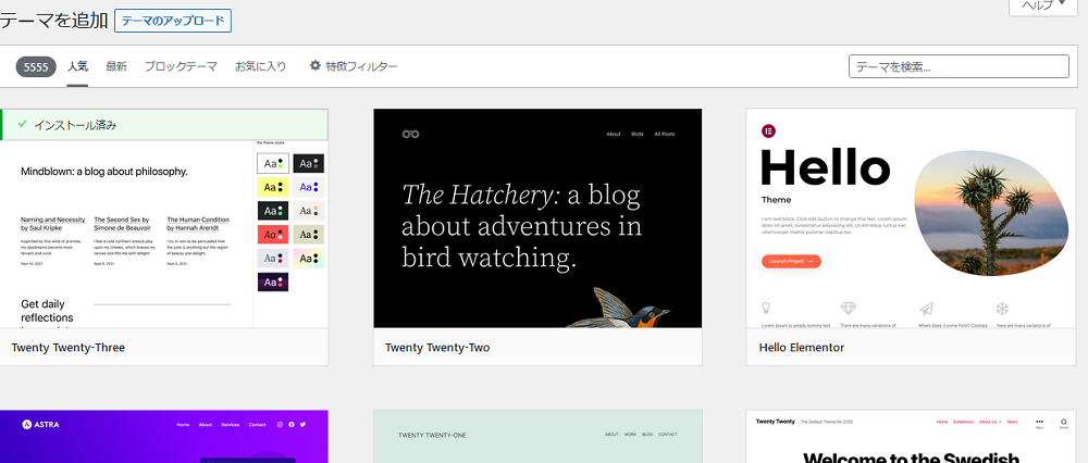 このテーマというのはWordPressサイトのおおまかなデザインだったり機能が搭載されているテンプレートとなりますので、意外と重要なポイントになります。