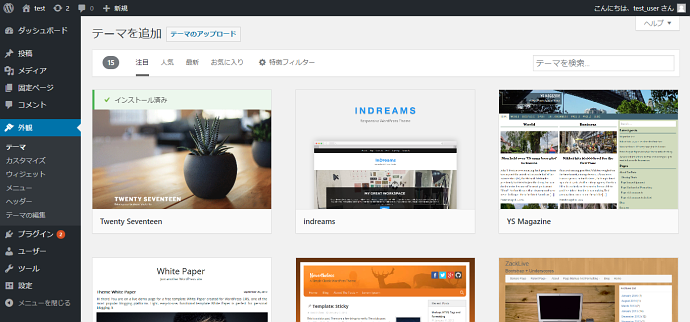 サイト名などの設定を行った次にテーマの設定を行うことが推奨されます。