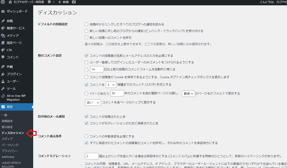 この機能はWordPress管理画面の「設定」→「ディスカッション」から設定を行うことができます。