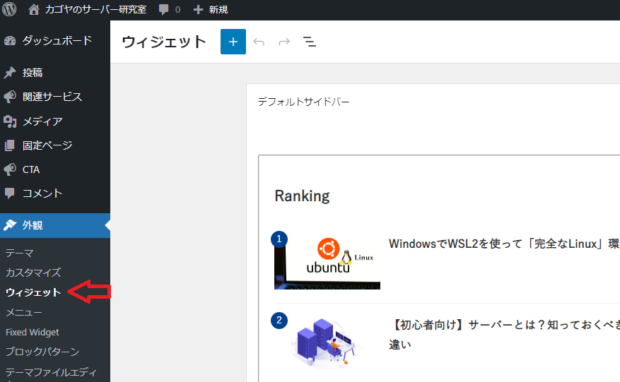 WordPressでは当然ウィジェット(サイドバー)の設定も可能です。