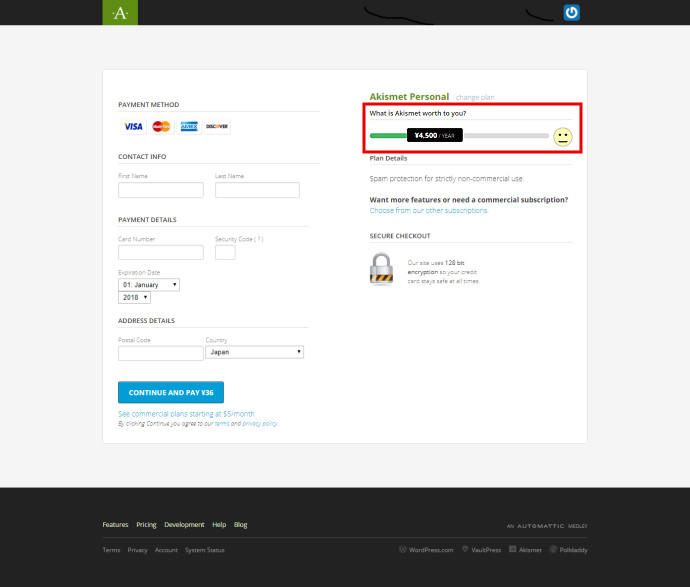 なおAkismetは有料版・無料版がありますが、無料版でも基本的な機能が利用可能であるため、ここでは無料版の設定方法を紹介します。無料版・有料版の違いは後述します。