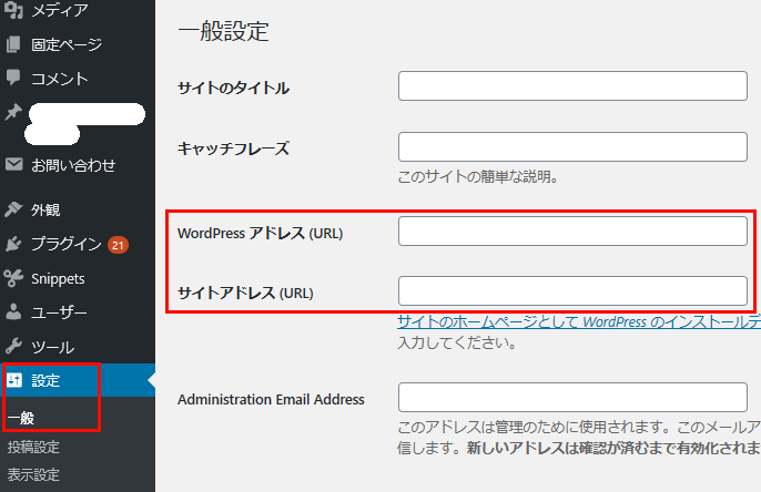 WordPressの管理画面内には、URLの設定を変更できる項目があります。