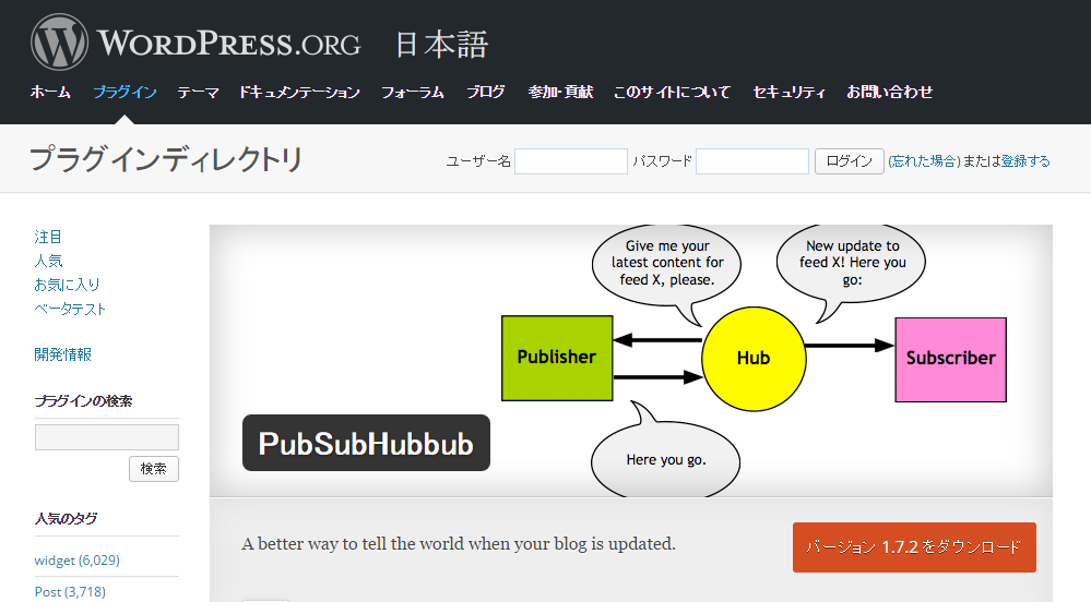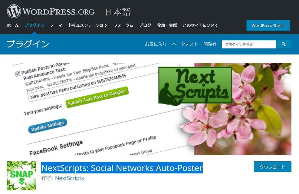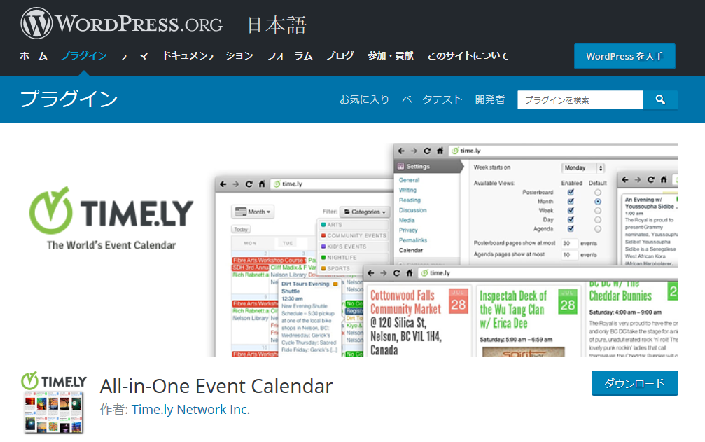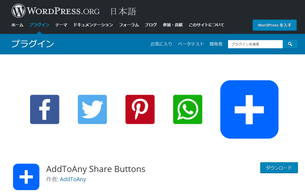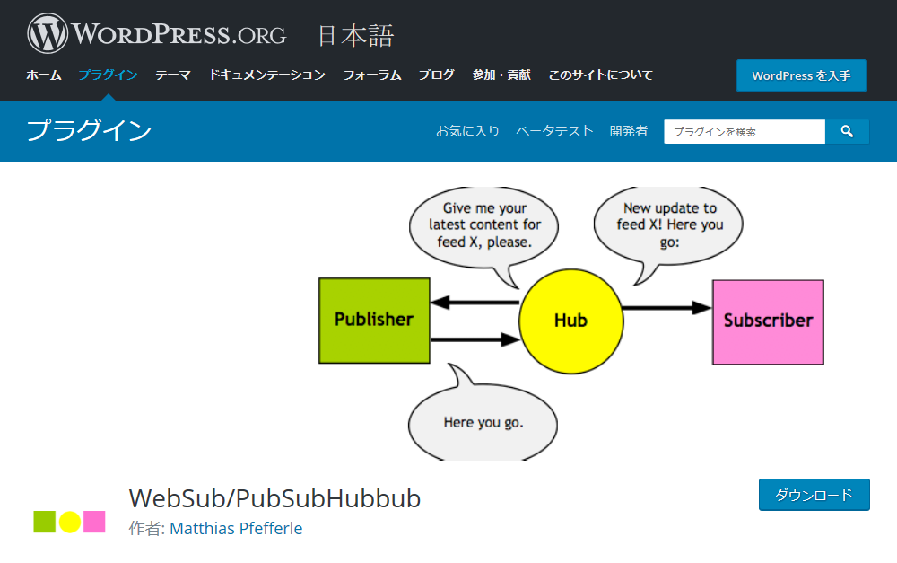 ここから導入したいプラグインを選択し、表示された画面にあるダウンロードボタンを押してプラグインのデータを入手します。