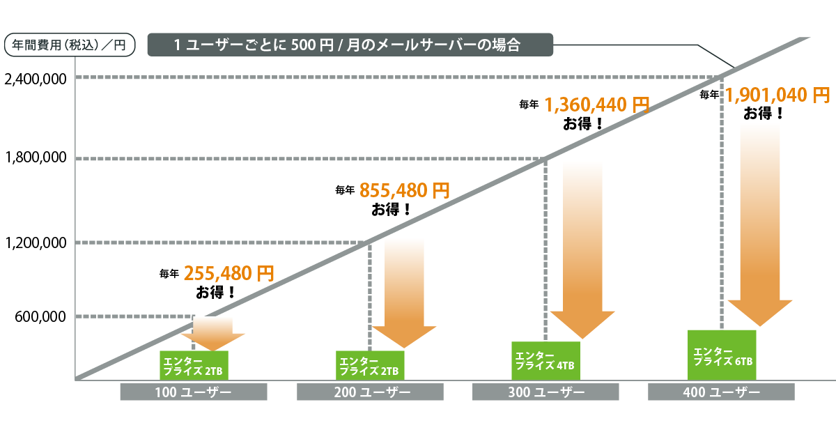 自社でメールアーカイブ環境を整えるのには数百万円の導入コストが発生します。