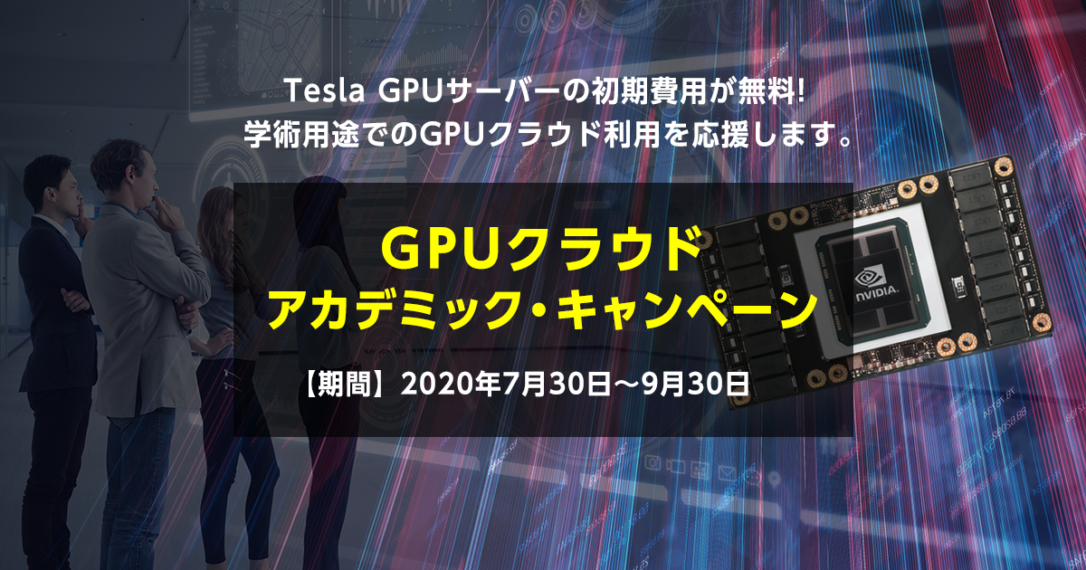 カゴヤ・ジャパン株式会社では、2020年7月30日より学術用途でのGPUクラウド利用を応援する目的で「GPUクラウド・アカデミックキャンペーン」を開始します。